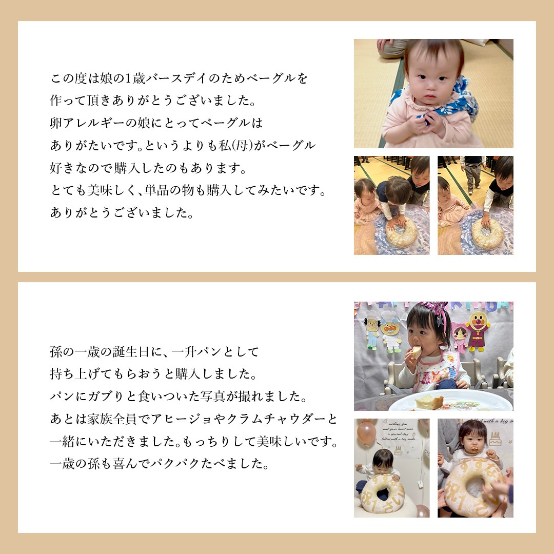 べーぐりの一升ベーぐるは特別感がアップする名入れ、メッセージ対応で、我が子だけのオリジナルの一升ベーぐるを作ることができます。