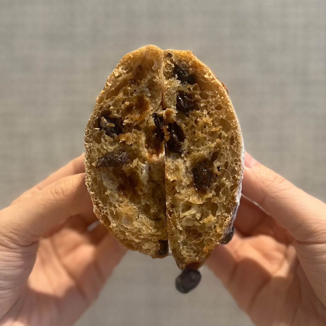 高加水のシコシコ食感はそのままに、濃厚でコクのあるカベルネソービニオン主体の赤ワインに浸けたレーズンをふんだんに使用しました(製品にアルコール分は含まれておりません)。パンなのにジューシー。※白砂糖不使用 ※イーストフード不使用 ※添加物不使用 ※乳不使用 ※卵不使用 ※香料不使用 ※着色料不使用 ※酸化防止剤不使用 ※乳化剤不使用 ※安定剤不使用