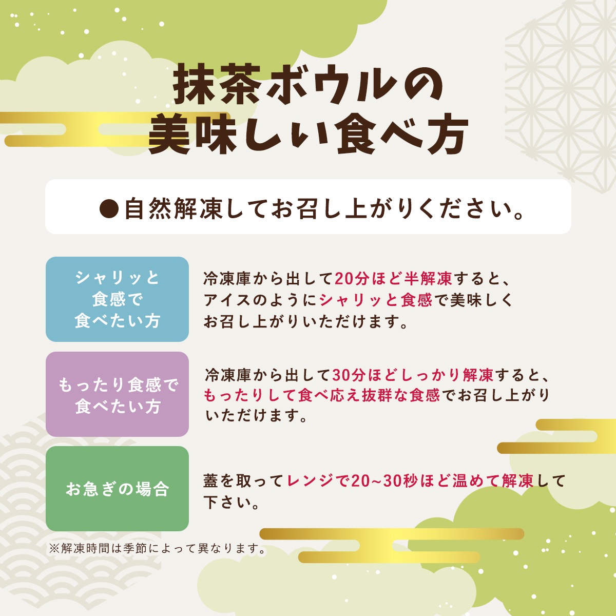 【抹茶ボウル】冷凍庫から出して20~30分ほど解凍してからお召し上がりください。